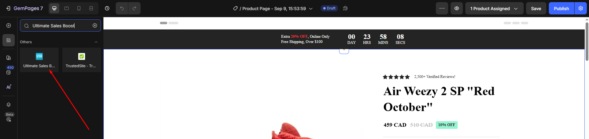 For your reference, you may check the tutorial on GemPages help center here: Adding Ultimate Sales Boost to GemPages