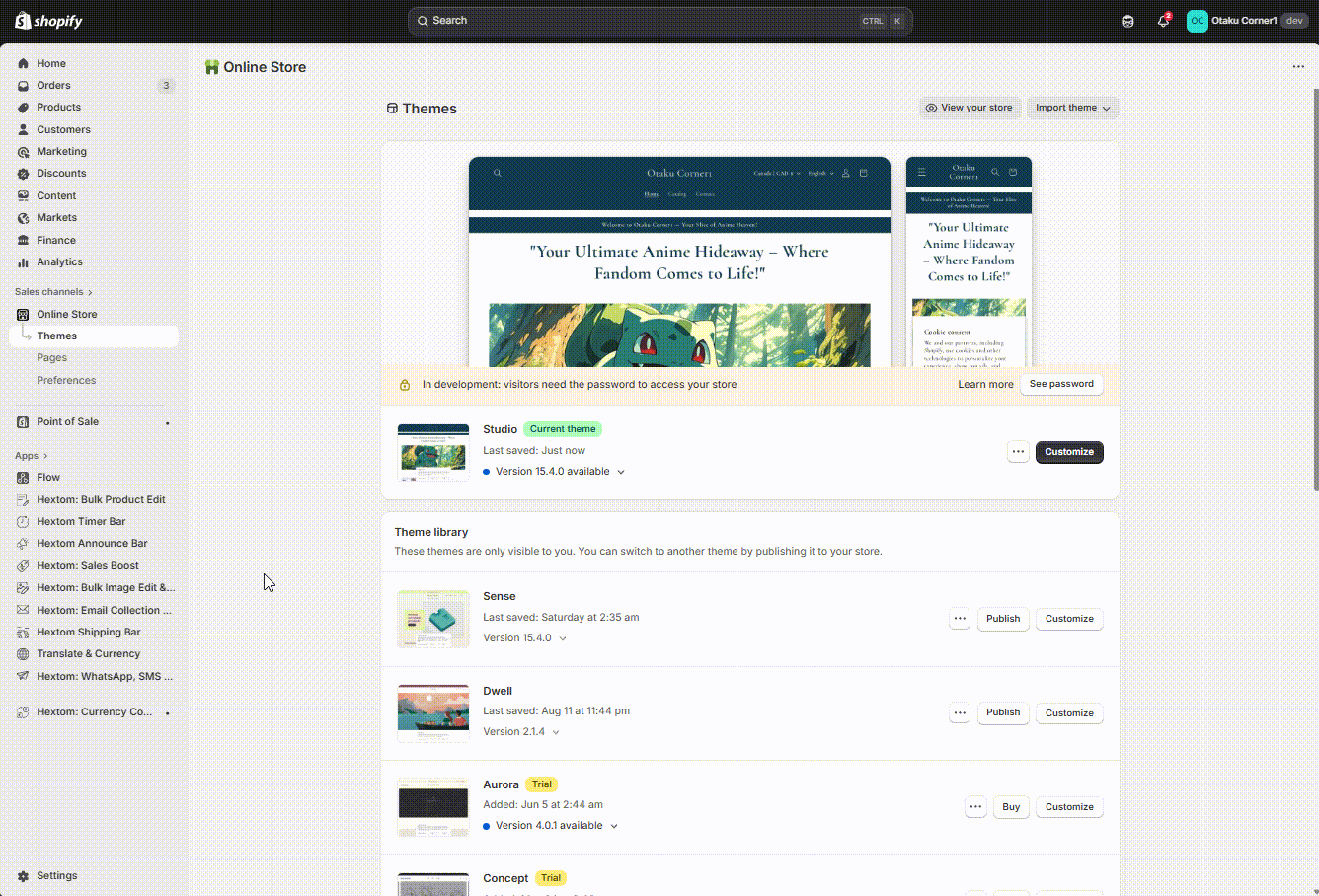 - Once enabled, the status will update to App Extension Enabled with a checkmark, and the Theme Extension indicator will show as Active (green dot).