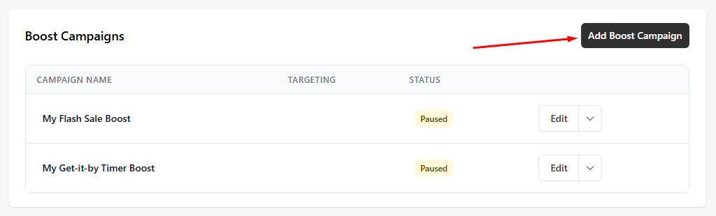From your app's dashboard, click the Add Boost Campaign button.