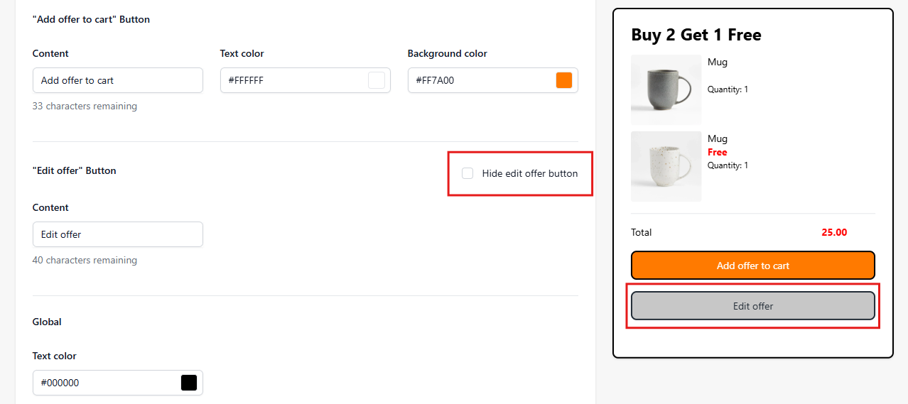 You also have the option to hide the Edit Offer button if you prefer to display only the Add Offer to Cart button.
